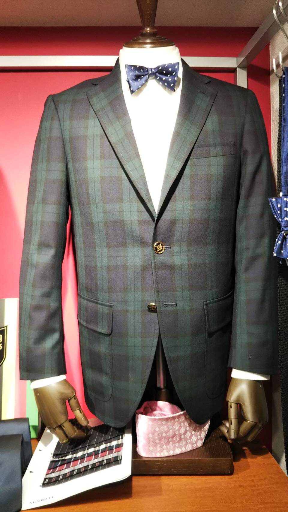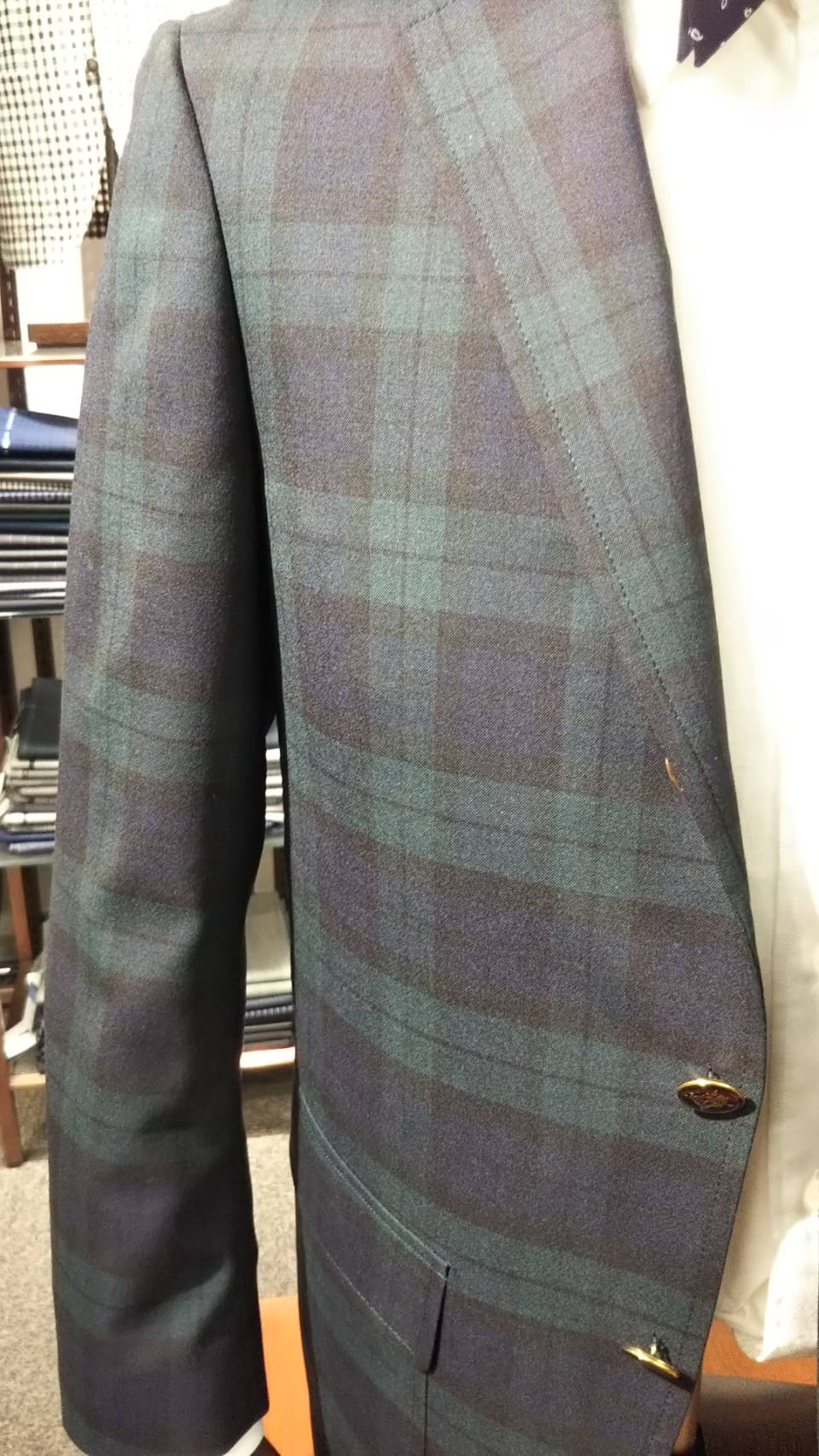 こんにちはブレフ京橋店の菱田です。いつも当店のブログをご覧いただき有難うございます。本日は王道のブラックウオッチ服地の紹介となります。ブラックウオッチとは→ スコットランドのタタンチェックの一種です。由来は18世紀、ハイランダ地方の警備していた(ハイランド連隊)に支給されたことから浸透していったようです。「黒い見張番」「ウォッチマンプラッド」とも言われております。